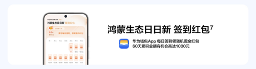 更让人感到贴心的是,华为nova14活力版还推出了诸多超值优惠福利,不止有15%的国家补贴,还有鸿蒙日日新红包。即日起至12月31日,用户购机后在华为钱包活动页面首次签到,即有机会领取最高99.9元的红包,每日签到还有机会领取累计金额高达1000元的随机红包,最高可以领60天。