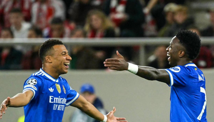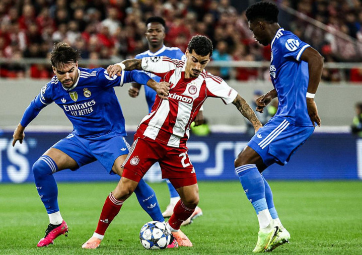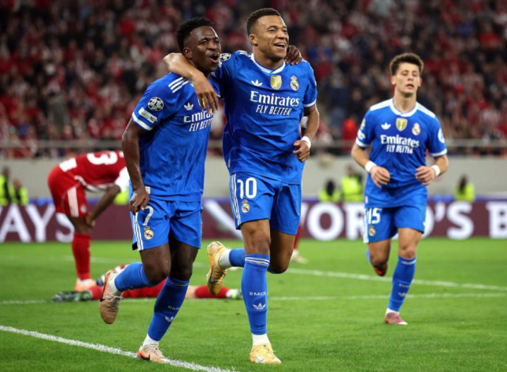 第24分钟,皇马再次进球。依然是姆巴佩的进球,他接到居莱尔的传中球,头球顶进。皇马反超比分。5分钟后,姆巴佩又进球了!卡马文加送出过顶长传球,姆巴佩前插,单刀推射破门。姆巴佩7分钟内上演帽子戏法,真是太强了。第33分钟,维尼修斯远射破门,但因为此前姆巴佩越位,进球无效。随后,楚阿梅尼远射击中了横梁。半场结束,皇马3-1领先奥林匹亚科斯。