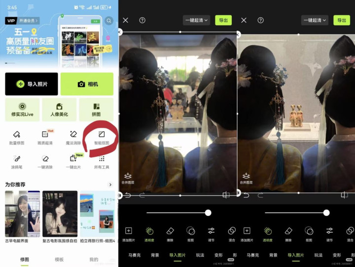 特色功能:抠图速度快,效率高。同时,支持一键生成多种风格的图片,如复古风、日系风等,让图片更具个性魅力。