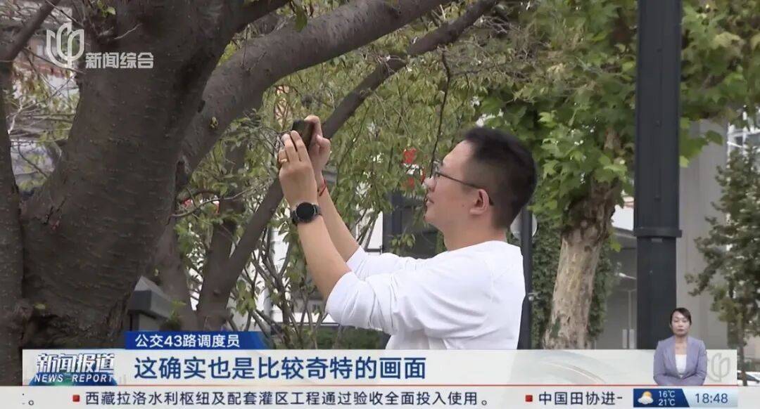 每年樱花季游客爱打卡的南浦大桥公交枢纽站,近来樱开二度,虽然只是部分开花,但也足够成为街头一景。